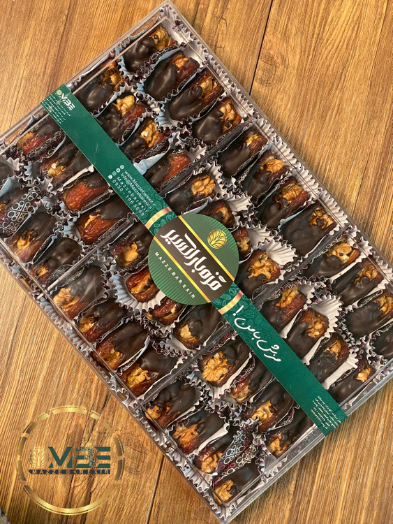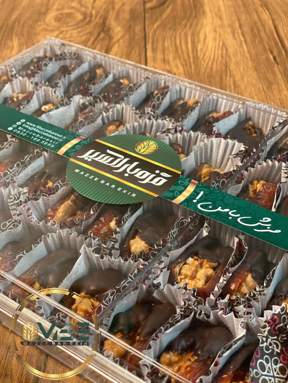 تهیه شده از بهترین نوع خرما پیارم و مغز گردوی ایرانی با پوشش شکلات ۷۶٪