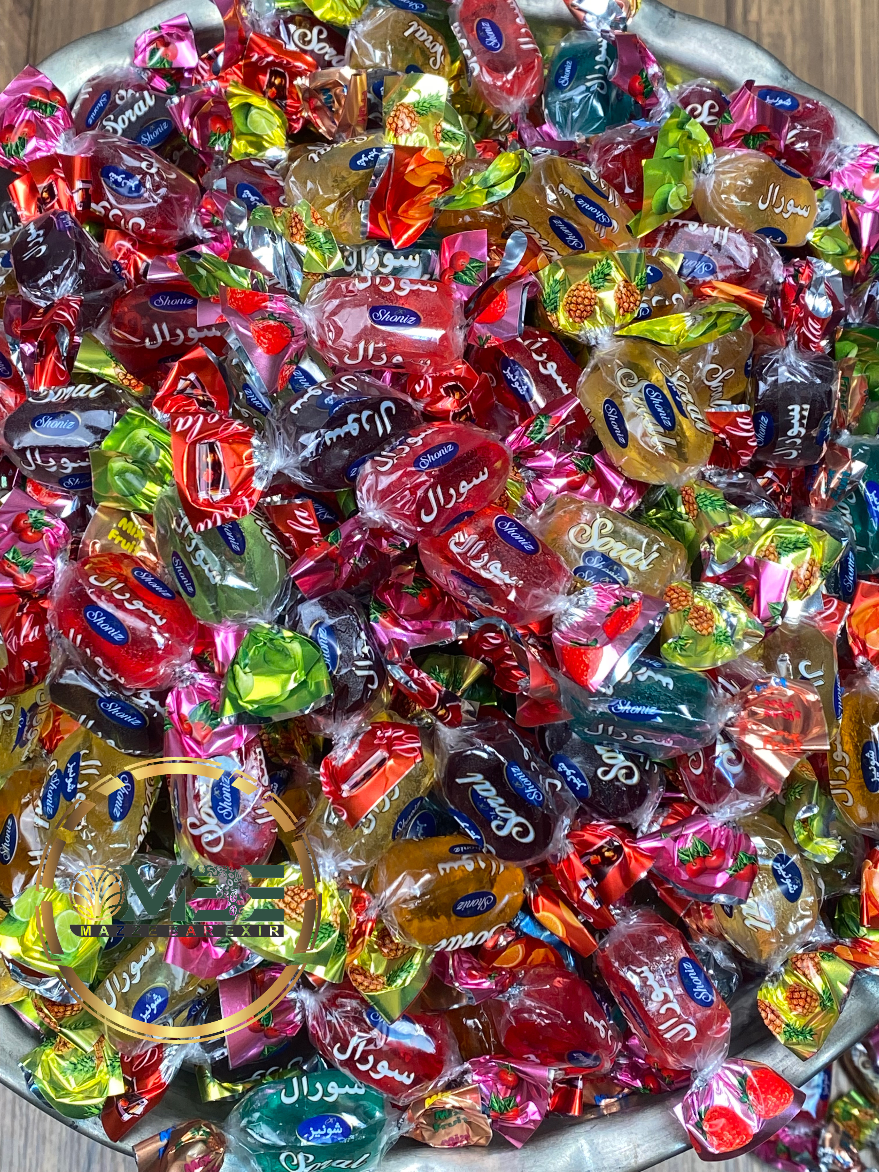 شکلات ژله ای پاستیلی سورال شونیز این شکلات با بافت ژله ای پاستیل مانند با طعم های متنوع میوه ای عرضه میشود طعم و ظاهر جذاب این محصول باعث هیجان کودکان و لذت بزرگسالان میشود.